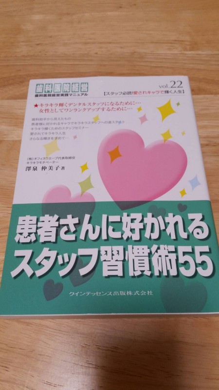 今回の講師である、澤泉 仲美子さんが出版した「患者さんに好かれるスタッフ習慣術55」が気になったのでその場で購入しちゃいました!